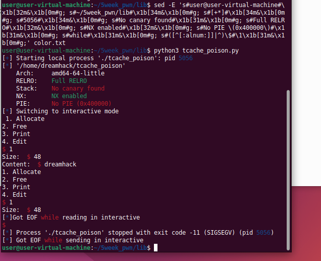 user@user-virtual-machine:~/5week_pwn/lib$ python3 tcache_poison.py